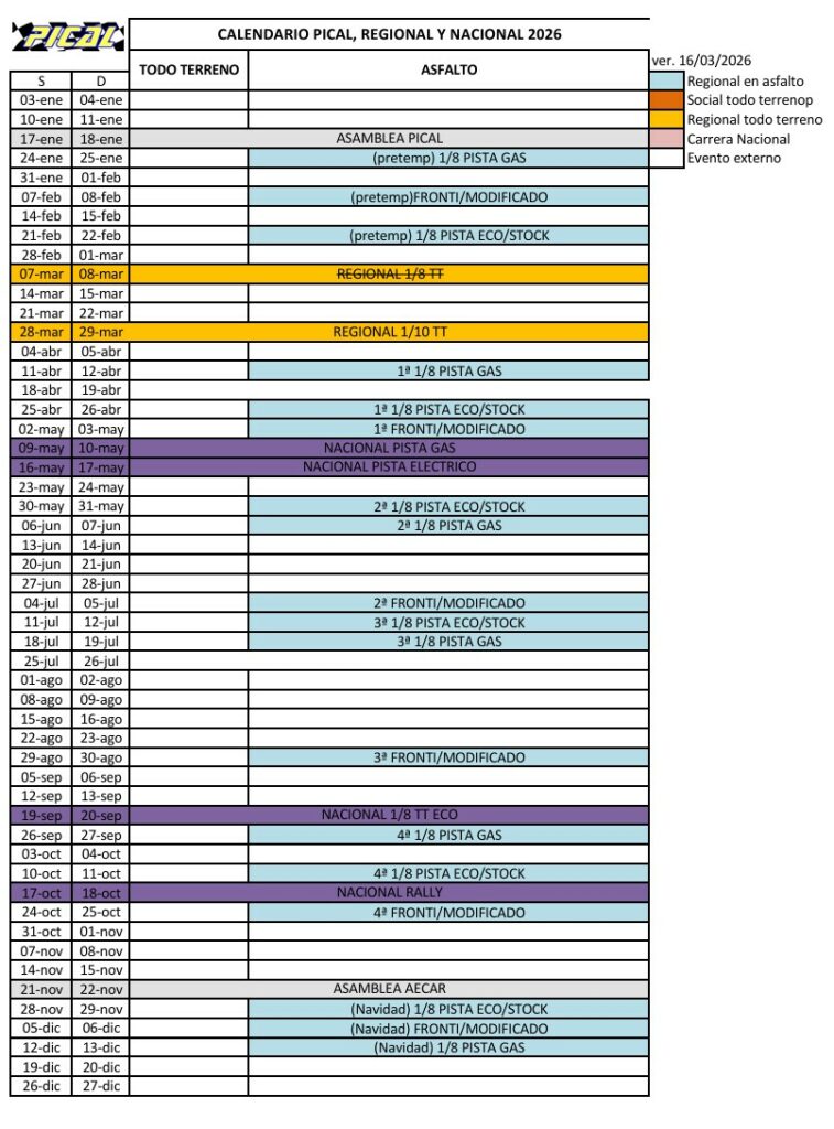 Club PICAL > Calendario